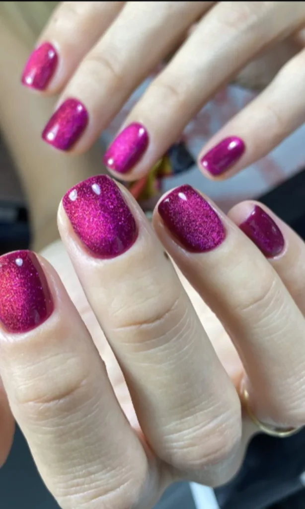 En 2025 llega un nuevo must: velvet nails. Tonos brillantes y efecto cat eye que crean un brillo tridimensional sofisticado. ¡El glamour sube de nivel! ¿Ya las has probado?